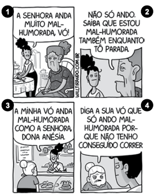 SE11562 - (Agente de Trânsito. 2024. Vunesp) Leia a tira para responder às questões de números 01 e 02.