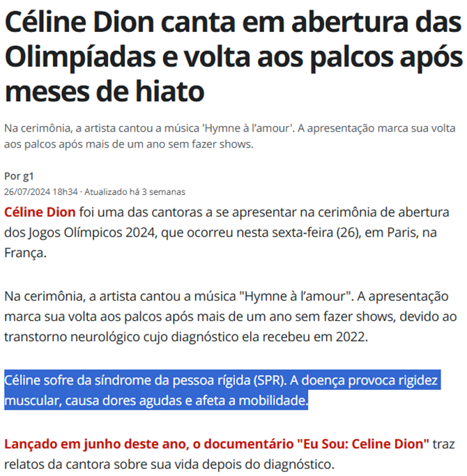 SE11537 - (jul/24) Em 2024, Celine Dion voltou aos palcos durante a cerimônia de abertura das Olimpíadas na França, cantando "Hymne à l’amour".