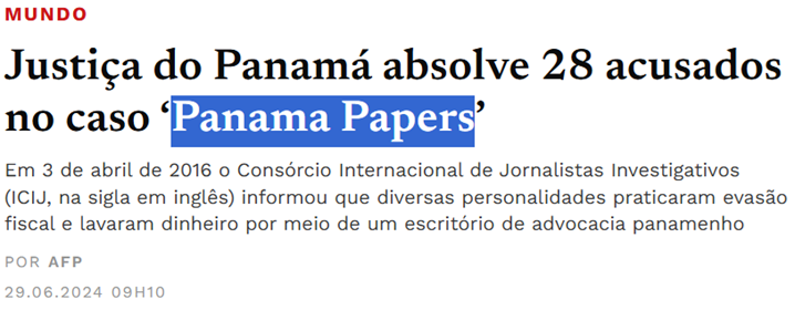 SE11464 - (jun/24) Um tribunal do Panamá absolveu nesta sexta-feira 28 pessoas acusadas de lavagem de dinheiro relacionada ao extinto escritório de advocacia panamenho Mossack Fonseca, epicentro do escândalo internacional.