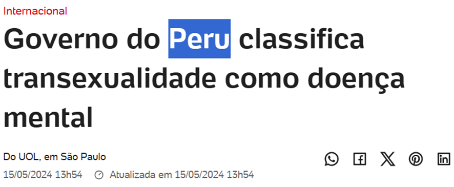 SE11351 - (mai/24) O governo do país passou a classificar a transexualidade e transtornos de identidade de gênero como doenças mentais.