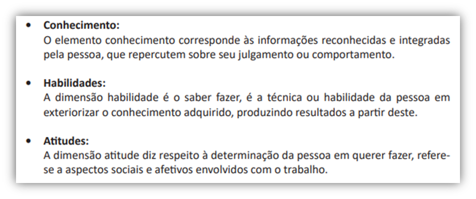SE11217 - (Analista Judiciário. 2023. Cebraspe/Cespe) No que concerne ao conceito e à tipologia de competências, julgue o próximo item.