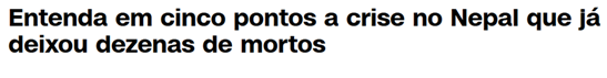 SE13932 - (Siga Escrevente. 2025. Inéditas) A recente crise política e social de um país da Ásia, vizinho da Índia, ganhou destaque após jovens manifestantes destruírem prédios públicos e forçarem a renúncia do primeiro-ministro. O país, que tem uma política turbulenta, fez a transição de monarquia para república em 2008.