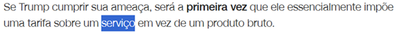 De acordo com a notícia, sobre qual tipo de transação econômica (em vez de um produto bruto) a tarifa seria imposta pela primeira vez?