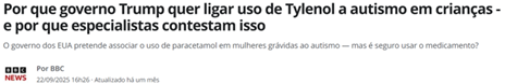 De acordo com a notícia, qual é o medicamento (ou sua marca comercial nos EUA) cujo uso por mulheres grávidas está sendo associado ao autismo, apesar da falta de consistência nas pesquisas?