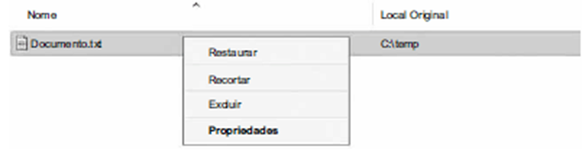 Caso o usuário selecione a opção Excluir, o arquivo será