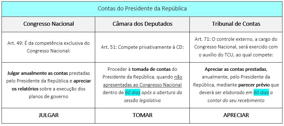 SE9953 - (Defensor Público. 2015. FCC) A Constituição Federal autoriza que a tomada de contas do Presidente da República seja realizada