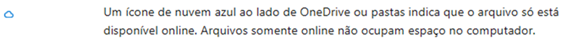 No Explorador de Arquivos do Windows, o ícone de uma nuvem azul ao lado de um arquivo OneDrive indica que: