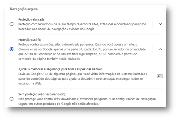 Os níveis de proteção de navegação segura oferecidos por esse navegador são:
