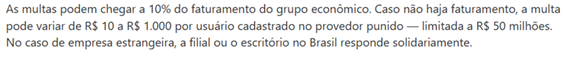 De acordo com a notícia, qual é o valor máximo da multa que pode ser aplicada a uma empresa, limitada a um teto, caso não haja faturamento?