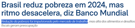 Qual foi a principal razão apontada pelo Banco Mundial para a redução do índice de pobreza no Brasil em 2024?