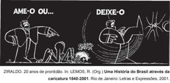 Na charge, Ziraldo ironiza um lema adotado pelo governo Médici (1969-1974), denunciando que