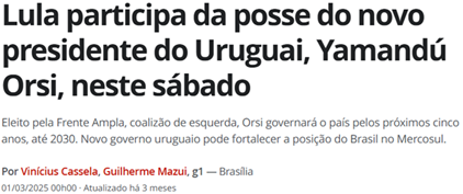 Em qual país ocorre a posse de Yamandú Orsi?