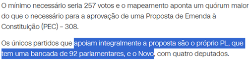 SE13171 - (Siga Escrevente. 2025. Inéditas) O Partido Liberal (PL) está em uma semana crucial para avançar com um projeto de lei que busca anistiar envolvidos em eventos ocorridos em 8 de janeiro. A legenda estima um apoio significativo para a proposta, superando o mínimo necessário para sua aprovação.