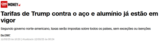 SE13151 - (Siga Escrevente. 2025. Inéditas) A Casa Branca anunciou que tarifas de 25% sobre importações de _______________ entraram em vigor. Essas taxas serão aplicadas a todos os países, sem exceções. O Brasil, um dos principais fornecedores para esse mercado, será impactado por essa medida.
