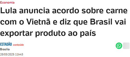 SE13150 - (Siga Escrevente. 2025. Inéditas) O presidente Luiz Inácio Lula da Silva anunciou um acordo comercial com o Vietnã, marcando um importante passo nas relações bilaterais. A decisão foi comunicada após uma reunião entre os líderes dos dois países, resultando em uma "notícia extraordinária" para o mercado brasileiro. A presença de líderes do Legislativo brasileiro no encontro foi destacada como um fator que fortaleceu a decisão.