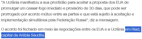 Onde foi fechado o acordo de cessar-fogo entre os EUA e a Ucrânia?