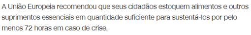 Por quanto tempo a União Europeia recomendou que seus cidadãos estocassem alimentos e outros suprimentos essenciais em caso de crise?