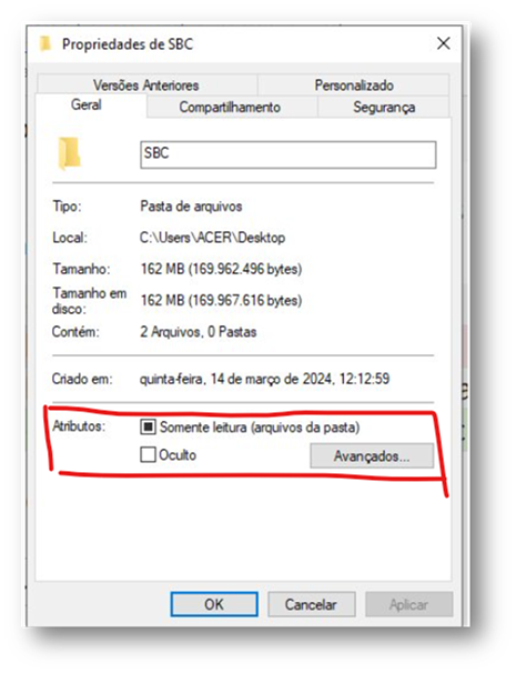 SE13121 - (Fiscal Fazendário. 2024. Outras) No Windows 11, ao entrar nas propriedades das pastas, é possível encontrar a seção “Atributos”, que consiste nas duas opções