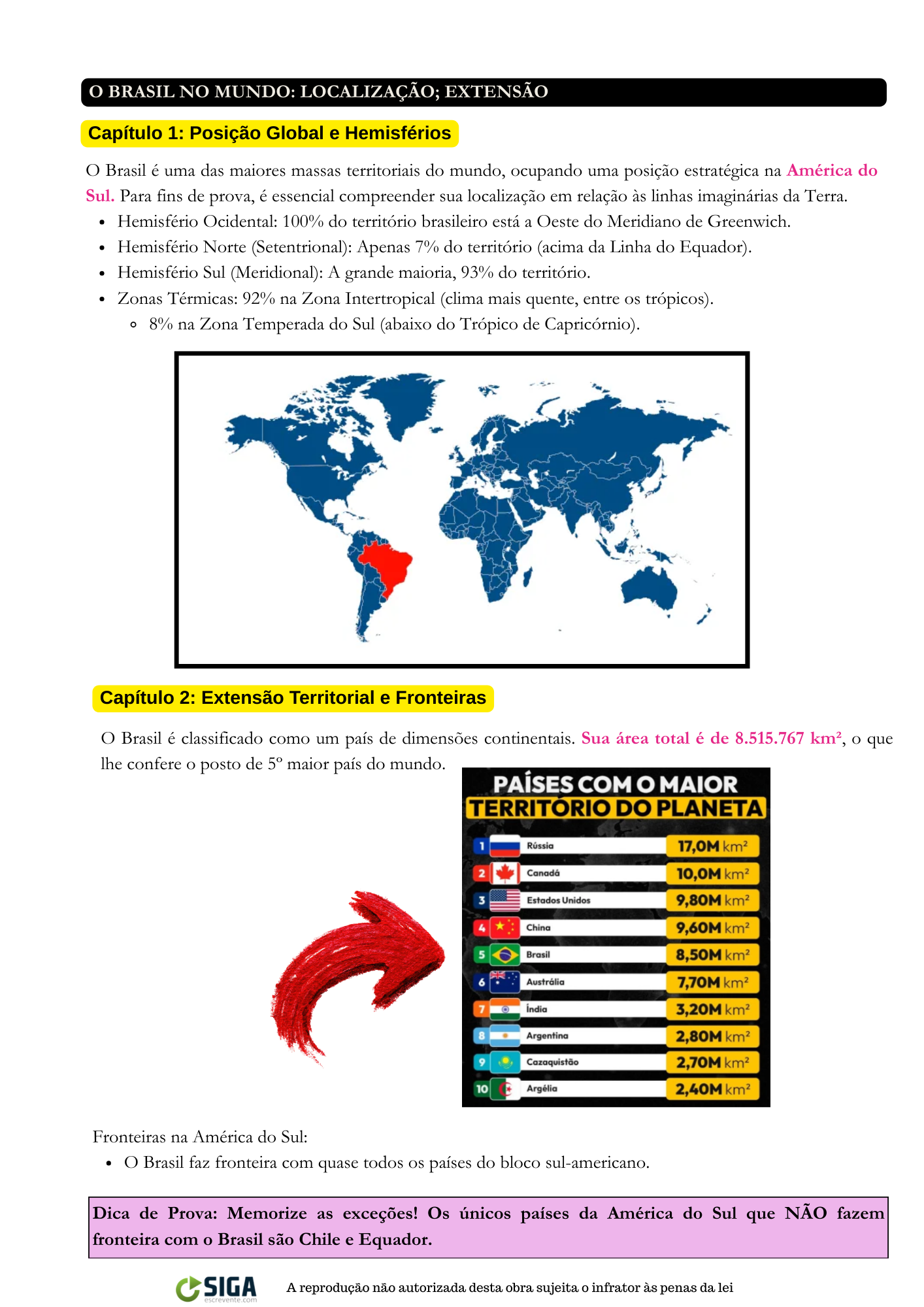 SE13990 - (Siga Escrevente. 2025. Inéditas) A extensão territorial do Brasil é de aproximadamente 8.515.767 km², o que o torna o: